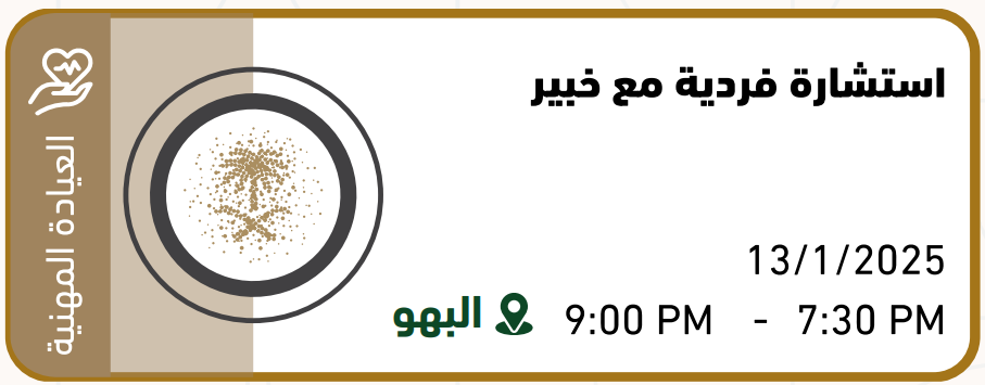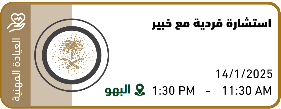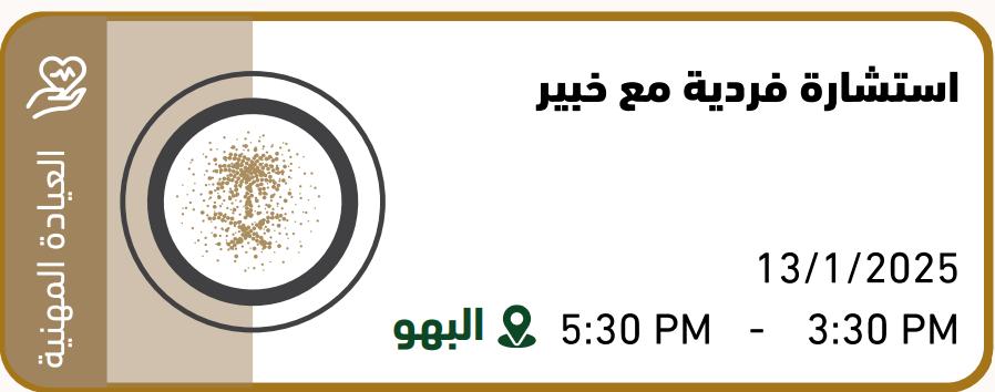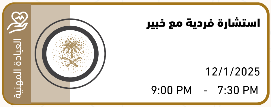 جلسة استشارية نقاشية يقدم فيها خبير متخصص توجيًها مهنًيا فردًيا للطلاب والطالبات عبـر مناقشـة اهتمامـاتهم، تقييم مهاراتهم، وتحديد المسارات المهنية الأنسـب لهم، مـع إتاحـة مسـاحة لطرح الأسـئلة قبـل بـدء الورشـة. يقـوم الخبير بمناقشة هذ الأسـئلة والإجابـة عنها بعمق، مانحاً المشــــاركين إرشــــادات عمليــــة واضــــحة تــــدعم خطـواتهم المســتقبلية وتســاعدهم على بناء جاهزيــة مهنيــة قويــة وواثقة وتهدف إلى: