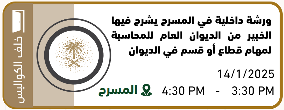 جلسة معمّقة يستعرض فيها خبراء الديوان أبرز ممارسات الامتثال المالي، الأخطاء الشائعة في التقارير، وكيفية تعزيز جودة الإفصاح المالي داخل الجهات الحكومية، وتهدف إلى: